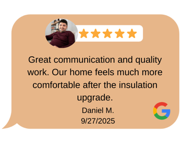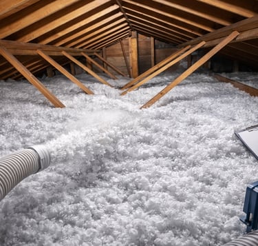 We install professional blow-in attic insulation designed to improve thermal performance, stabilize indoor temperatures, and help reduce unnecessary energy loss throughout the home.